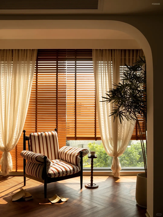 百叶帘或纱帘 调节光线,既保护隐私,又不失柔和;